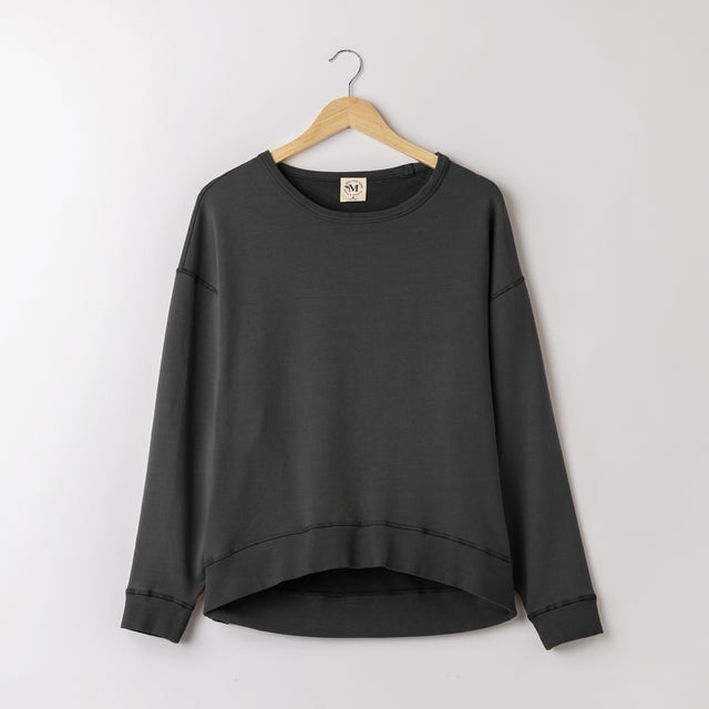 Designed with slight dolman sleeves and a boxy silhouette, it offers an oversized fit without feeling sloppy. A subtle hi-low hem adds extra coverage in the back, and each piece is garment washed for a soft, lived-in vintage look. Crafted from ROC™ cotton, sourced from farms committed to restoring soil health, ethical animal treatment, and fair labor practices, this sweatshirt blends conscious fashion with everyday ease.