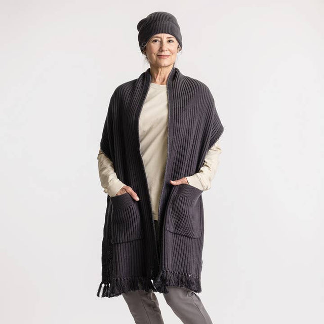 Stay cozy and stylish with the Oversized Pocket Scarf by Maggie’s Organics — a versatile, all-season accessory crafted from chunky, heavyweight 100% Regenerative Organic Certified® (ROC™) cotton. This thoughtfully designed scarf doubles as a wrap or open poncho, featuring end tassels, contrast stitching, and two roomy pockets for effortless functionality.