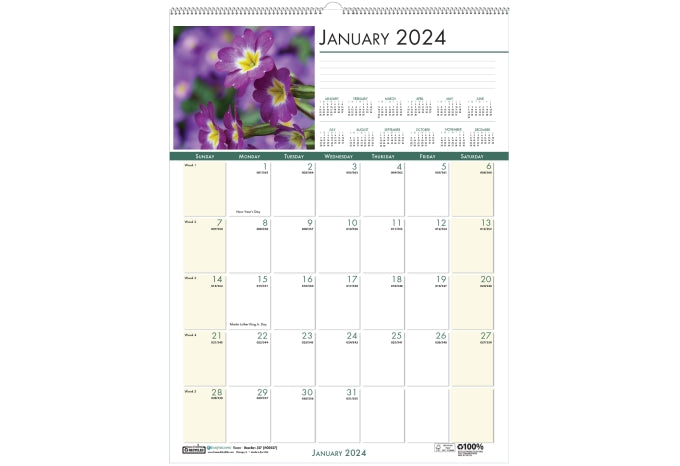 - Each month features a distinctive flower calendar image. Includes a wire hanger to easily hang the calendar on the wall