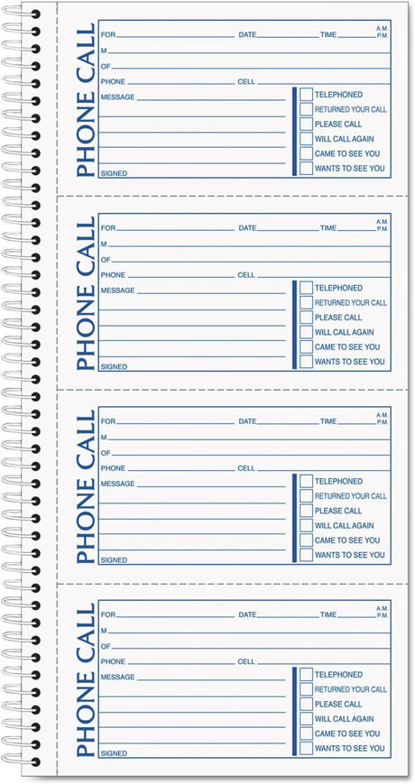 Second Nature Phone Call Book, Two-Part Carbonless, 5 x 2.75, 4 Forms/Sheet, 400 Forms Total