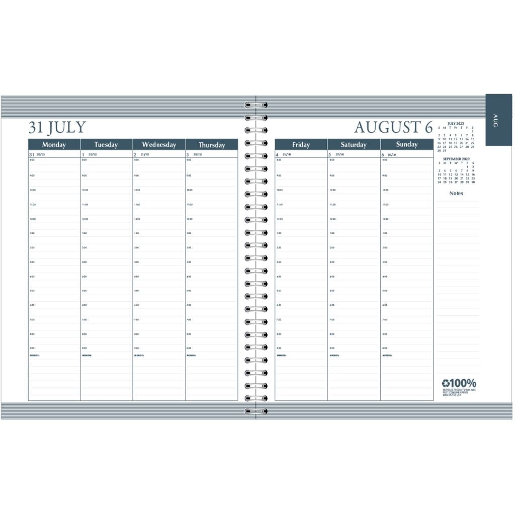 - Includes hourly appointment increments from 8:00 am to 9:00 pm within each day allow you to keep track of meetings, daily projects and week long goals