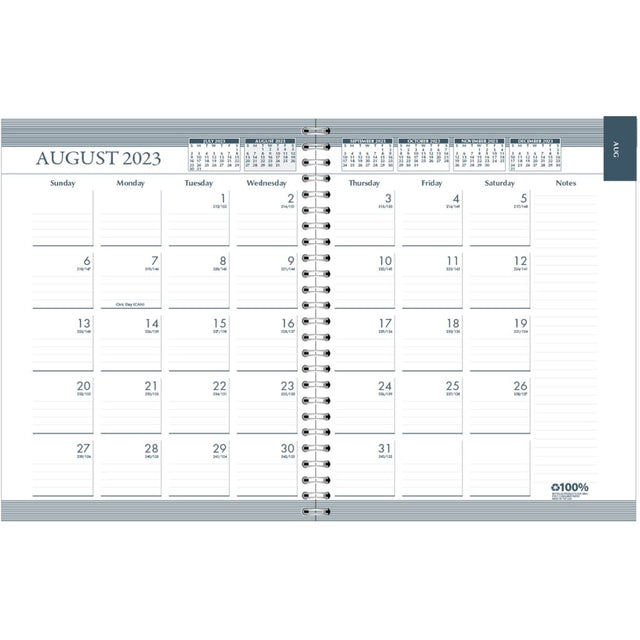 - August - July featuring 12 months for easy planning, Week begins on a Monday with a full Saturday and Sunday