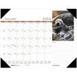 - Each monthly calendar page contains a wildlife photo and inspirational quote