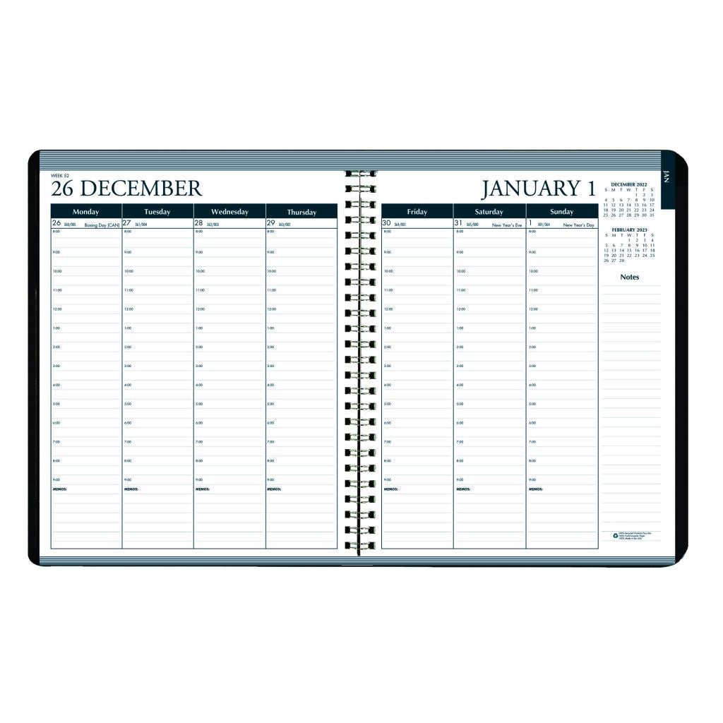 - Includes hourly appointment increments from 8:00 am to 9:00 pm within each day allow you to keep track of meetings, daily projects and week long goals. Features die cut tabs to quickly find the date you need